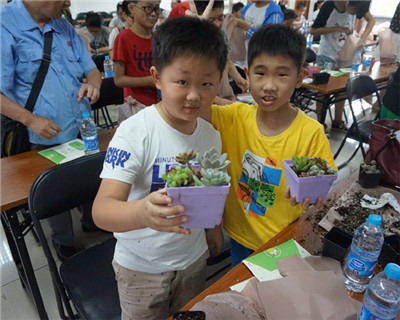 首先來自區(qū)園林綠化管理署的楊薇嬌老師為學(xué)生們上了一堂精彩有趣的“多肉植物知識講座”。楊老師從多肉植物的品種、繁殖方式、生長特性等方面為學(xué)生進行講解。隨后,在楊老師的指導(dǎo)下,孩子們現(xiàn)場動手體驗種植多肉植物的樂趣,分盆、填土、擺盆,孩子們忙得不亦樂乎,不一會兒,一個個造型獨特的拼盆便完成了,對于自己的勞動成果,孩子們都愛不釋手。講座結(jié)束后,一場主題為“家庭美德、低碳生活”知識問答比賽開始了,比賽內(nèi)容涉及垃圾分類、節(jié)能減排、家庭美德等方面,孩子們紛紛踴躍回答,通過激烈的搶答使大家對家庭美德、低碳生活知識有了進一步的認(rèn)識。