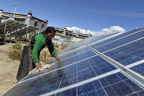 西藏日喀則市崗巴縣龍中鄉(xiāng)查那村獨立小型光伏電站電池板。記者21日從西藏自治區(qū)科技廳了解到,截至目前,國家已累計投入資金40多億元,在西藏實施了總裝機容量達到近200兆瓦的光伏項目,直接或間接解決了無電或缺電地區(qū)60萬以上人口的用電難題。