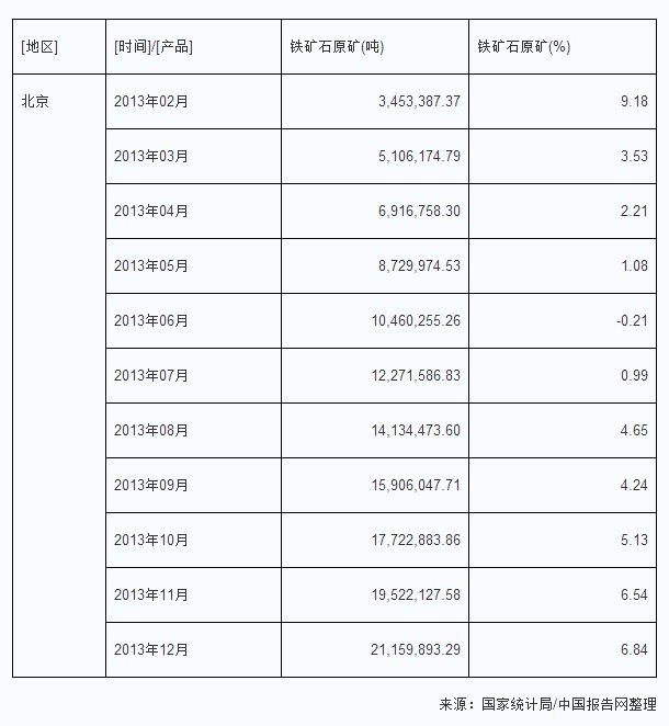 2013年北京鐵礦石原礦生產(chǎn)量及增速情況