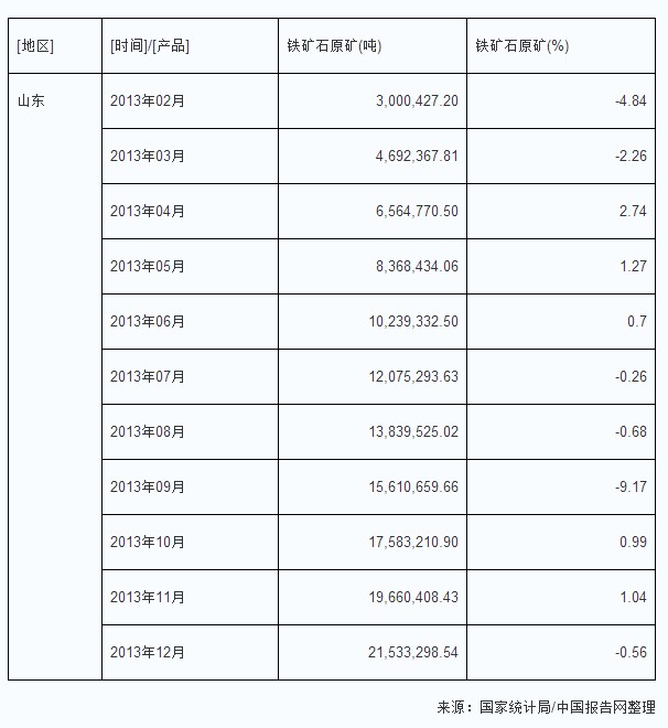2013年山東鐵礦石原礦生產(chǎn)量及增速情況