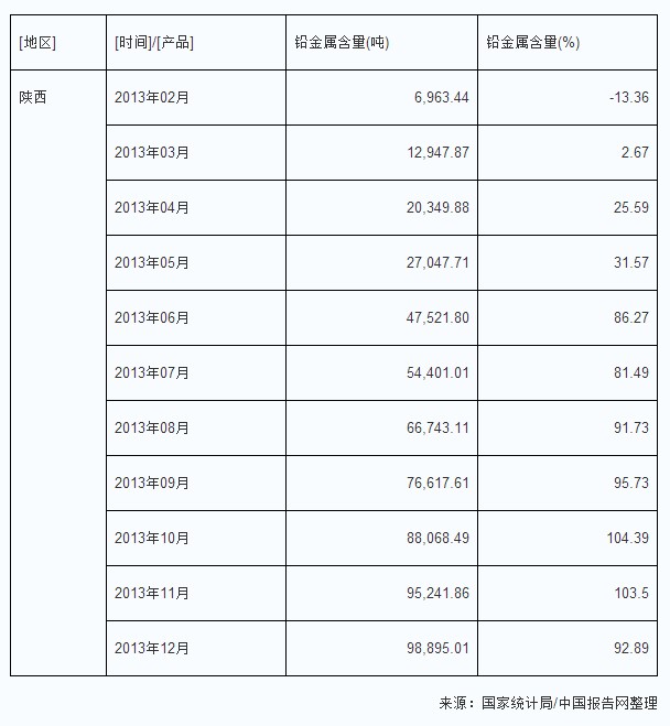 2013年陜西地區(qū)鉛金屬生產量及增速情況