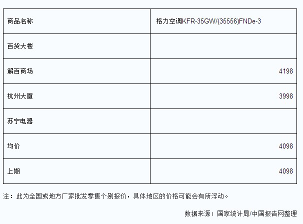 2014年3月杭州市主要家電商場(chǎng)格力空調(diào)KFR-35GW/(35556)FNDe-3零售價(jià)格統(tǒng)計(jì)表