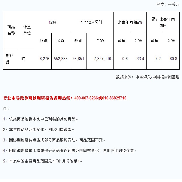 2013年1-12月中國電容器出口量及增速統(tǒng)計