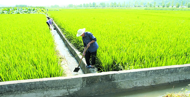 8月5日,湖北省十堰市房縣軍店鎮(zhèn)上茅坪村用水協(xié)會管水員向灌區(qū)農(nóng)田放水。近年來,房縣不斷改革農(nóng)村調(diào)水、用水體制,成立村級農(nóng)民用水協(xié)會,由農(nóng)民管水員科學(xué)管水,年均節(jié)水1660萬立方米。