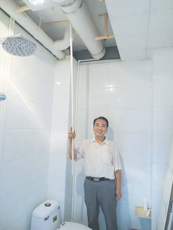 4日,記者在常向前家看到了這套分質(zhì)節(jié)水裝置,它是在衛(wèi)生間頂部設(shè)置一個(gè)智能節(jié)水箱,然后通過(guò)水管將其和家用凈水機(jī)的尾水管相連,將尾水引入節(jié)水箱。“相當(dāng)于‘廢物利用’,這些尾水可以沖馬桶用,也可以涮墩布用。”說(shuō)起這個(gè)新發(fā)明,常向前一臉的自豪,“尾水從高處自動(dòng)向低處的坐便器供水,實(shí)現(xiàn)了分質(zhì)用水。”