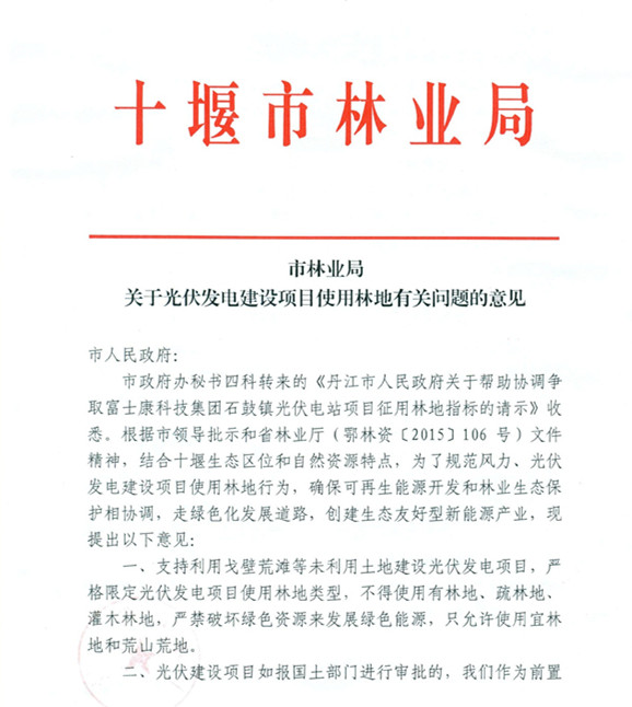為規(guī)范光伏項(xiàng)目建設(shè)用地,十堰市林業(yè)局下發(fā)了《關(guān)于光伏發(fā)電項(xiàng)目使用林地有關(guān)問題的意見》。以下為政策原文: