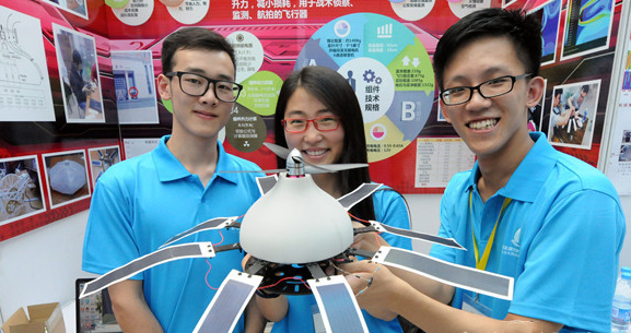 上海理工大學學生設計的“結合科恩達效應的微型太陽能戰(zhàn)術偵察機”,可用于戰(zhàn)術偵察、監(jiān)測、航拍。