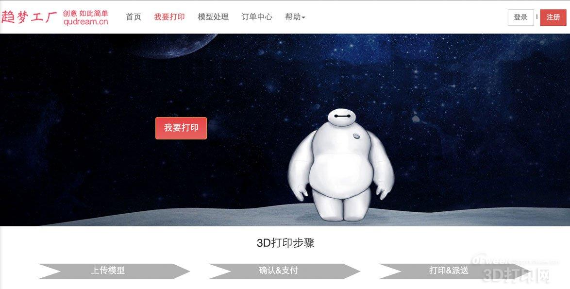 趨夢工廠是國內(nèi)第一家在線整體解決3D打印服務(wù)的互聯(lián)網(wǎng)電商平臺,創(chuàng)始成員出身X巴巴,騰訊,聯(lián)通。作為3D打印行業(yè)中最專業(yè),最懂互聯(lián)網(wǎng)的一支團隊,他們力求借助多年對互聯(lián)網(wǎng)用戶的了解,及互聯(lián)網(wǎng)大數(shù)據(jù)技術(shù),為更多對3D打印有需求的企業(yè)提供更高效和便捷的服務(wù),目前,該平臺的3D打印支持塑料、尼龍、鈦合金、鋼等10多種原材料。根據(jù)原材料的不同,訂購產(chǎn)品之后通常0.5~5日即可“出廠”。已有近百家制造企業(yè)在此平臺實現(xiàn)過3D打印。