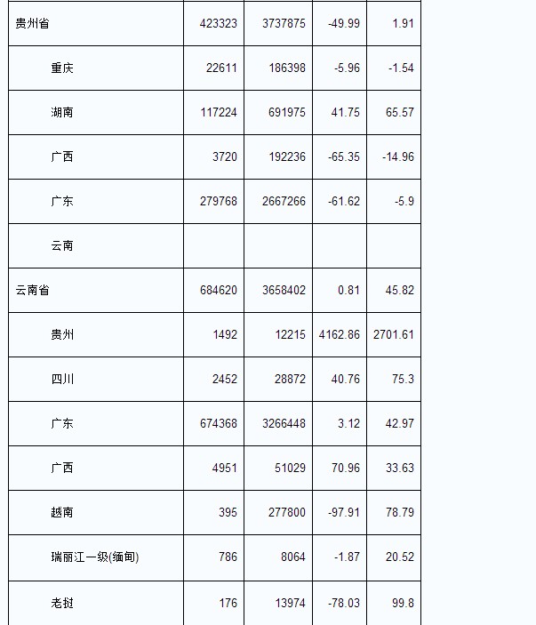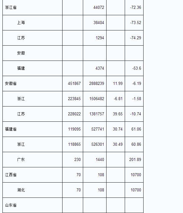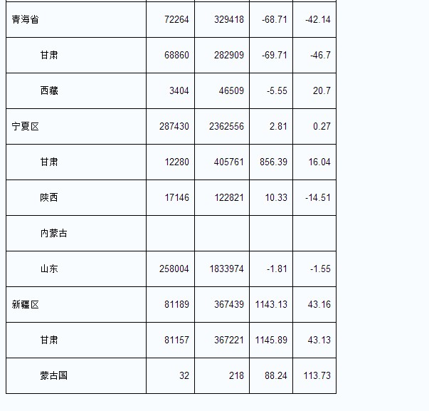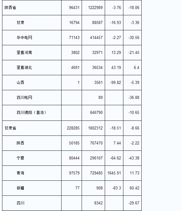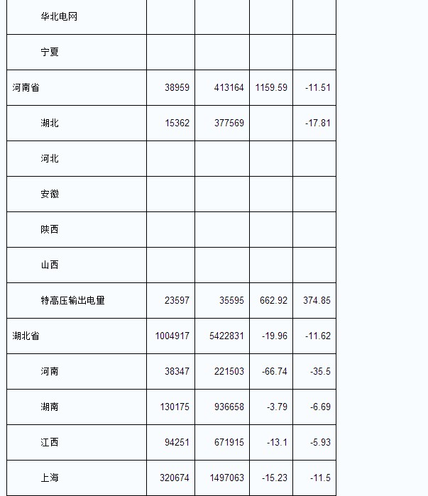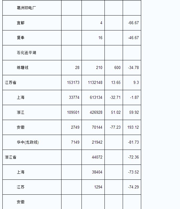 2013年8月我國各省輸出電量匯總表