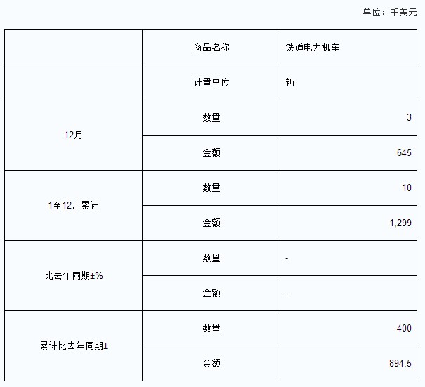 2013年1-12月中國(guó)進(jìn)口鐵道電力機(jī)車商品數(shù)量及增速同比