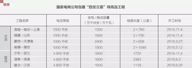 2015年是特高壓建設(shè)的“大”年。淮南—南京—上海1000千伏特高壓交流輸電工程、錫盟—山東1000千伏特高壓交流輸電工程、寧東—浙江±800千伏特高壓直流輸電工程建設(shè)有序推進(jìn)。同時,上半年,蒙西—天津南、榆橫—濰坊1000千伏特高壓交流輸電工程、晉北—江蘇±800千伏特高壓直流輸電工程先后拉開建設(shè)大幕,標(biāo)志著特高壓進(jìn)入全面提速、集中建設(shè)的新階段。隨著未來“五交八直”特高壓工程的加快推進(jìn),到2020年,我國將建成“三華”同步電網(wǎng),形成東北、西北、西南三個送端電網(wǎng)和“三華”一個受端電網(wǎng)的四個同步電網(wǎng)格局。