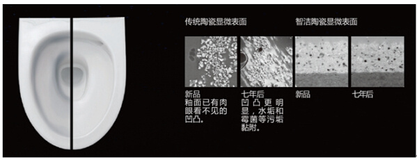 智潔技術(shù)(Cefiontect)的奧秘其實(shí)就在TOTO創(chuàng)新的陶瓷釉藥中。特殊的陶瓷專(zhuān)用釉藥,在陶瓷表面形成了超越納米尺度的超平滑表面,不給污垢容身的空隙,徹底杜絕污垢黏附和黑斑產(chǎn)生。不必使用過(guò)多的水和清潔劑,減少二次污染,讓坐便器的日常打理也更為簡(jiǎn)單。