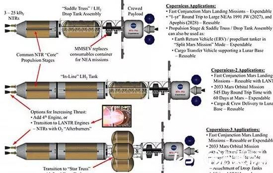 火箭所謂核熱推進(jìn)系統(tǒng)(即核火箭發(fā)動機(jī)),就是利用反應(yīng)堆產(chǎn)生的裂變熱能把工作介質(zhì)(推進(jìn)劑)加熱到 很高的溫度,然后將高溫高壓的工作介質(zhì)從噴管高速噴出,從而產(chǎn)生巨大的推動力。冷戰(zhàn)期間美國的NERVA型核火箭發(fā)動機(jī)和俄羅斯的RD-0410型核火箭發(fā)動機(jī)都做出了試驗(yàn)樣機(jī),進(jìn)行了除飛行試驗(yàn)之外的大量試驗(yàn),離研發(fā)成功近乎一步之遙,為今后的核推進(jìn)技術(shù)的發(fā)展提供了寶貴的經(jīng)驗(yàn)借鑒。而已經(jīng)走出悲劇的俄羅斯近幾年來研發(fā)的新一代核火箭發(fā)動機(jī)設(shè)計(jì),這一設(shè)計(jì)方案已成為俄羅斯研發(fā)雙模式(電源/推進(jìn))空間核動力系統(tǒng)的設(shè)計(jì)基礎(chǔ)?;鸺谶^去幾十年內(nèi),美國宇航局一直在研究核裂變飛船動力,核動力的探測器已經(jīng)制造完成,不過目前的核動力形式為核電池,比如钚同位素電池,可以產(chǎn)生電能。美國宇航局約翰格倫研究中心的工程師Stanely Borowski博士稱在我們的設(shè)計(jì)中使用了鈾-235作為反應(yīng)堆的燃料,最后形成電離氫或者等離子體推動飛船前進(jìn)。