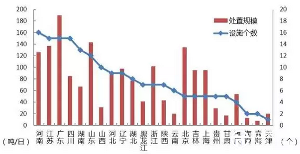 圖:截至2014年底部分省(區(qū)、市)醫(yī)療廢物處置情況示意圖