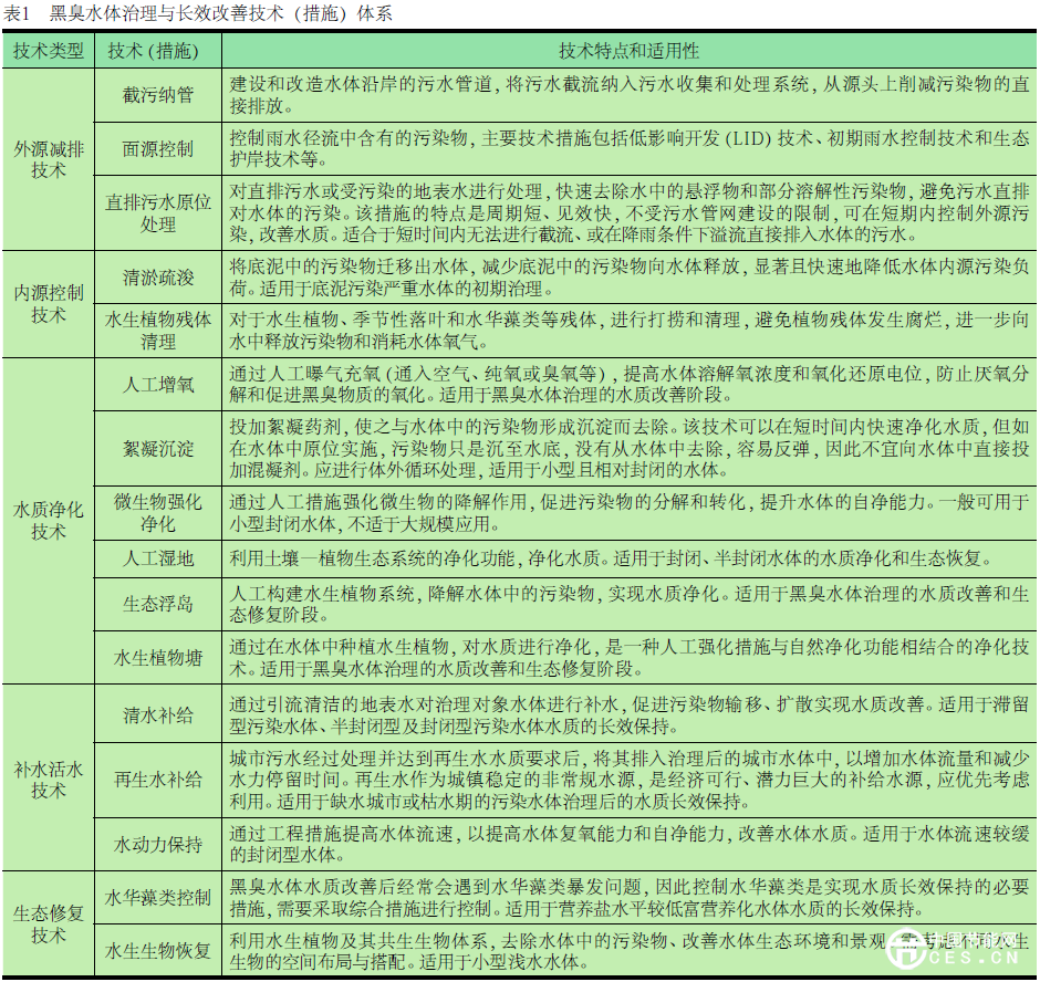 黑臭水體治理與水質(zhì)長效改善技術(shù)選擇原則