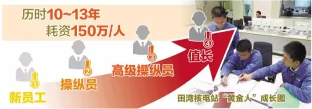 “在黃金人的培訓(xùn)上,各個公司都花費了很多人力、物力和財力。在田灣核電站,一個新員工,如果有志愿成為操縱員,其培訓(xùn)和考核需要需要5~6年的時間,從操縱員到值長需要5~7年的時間。而且這一過程需要過關(guān)斬將,不是所有人都能成為值長。”周萍告訴記者,這一個成長周期,人均培養(yǎng)成本是150萬元,堪比飛行員。如果需要送到國外學(xué)習(xí),則花費更多,像田灣核電站的首批員工要到俄羅斯學(xué)習(xí),確實是黃金打造出來的,但是這些操縱員所創(chuàng)造出來的價值,則比黃金還要多。