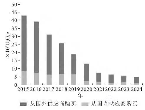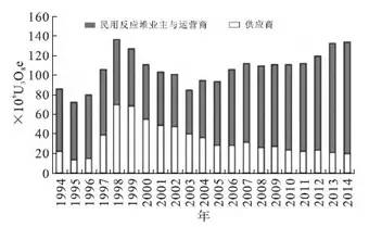 圖1 美國(guó)民用反應(yīng)堆業(yè)主與運(yùn)營(yíng)商的鈾采購(gòu)量( 1994—2014 年)