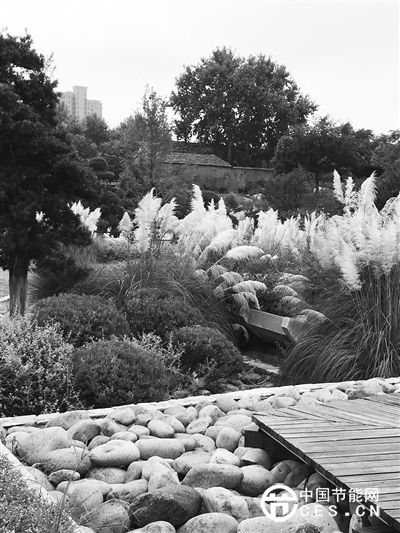 在江蘇省鎮(zhèn)江市西津渡街旁,兩名工人正在對玉山公園內(nèi)的植物進(jìn)行養(yǎng)護(hù)?;乩葪蛑苓叿N植了芒草等耐旱耐澇的植物,河溝里用大顆的鵝卵石進(jìn)行鋪設(shè)。如果不是鎮(zhèn)江市給排水管理處的工作人員孟憲威告訴記者,這是海綿城市的組成部分——“海綿體”,記者對玉山公園的印象還是僅停留在“公園”兩個字上而已。