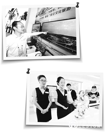 在2015青海文化旅游節(jié)上,中國移動(dòng)運(yùn)用“互聯(lián)網(wǎng)+旅游”模式,通過手機(jī)APP實(shí)現(xiàn)景點(diǎn)直播。圖為工作人員在展示通過手機(jī)軟件連接電視進(jìn)行景點(diǎn)直播。