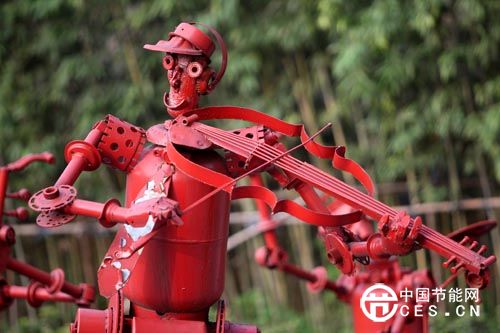 天子嶺生態(tài)公園東南角,一尊身高達8米、重量逾10噸的“環(huán)保金剛”格外顯眼,名為“回天大力神”,材料全部取材于天子嶺垃圾填埋區(qū)報廢的推土機、輪胎、滅火器等廢舊零部件,胸部由推土機底盤改造而成,腿部由頂推架和輪胎,腳部則是車頭、推土板組成。
