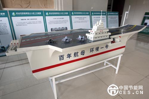 員工利用廢舊材料制作的航母模型