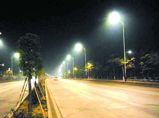 大學路是我市首條采用暖色調(diào)LED路燈照明的道路