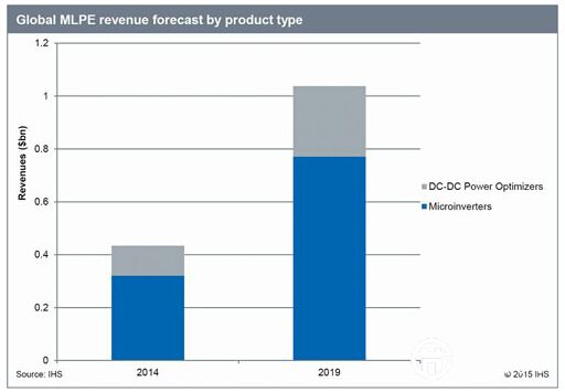 微逆變器和電源優(yōu)化器等以太陽能電池板為單位的功率電子市場(chǎng)展望(出處:IHS)