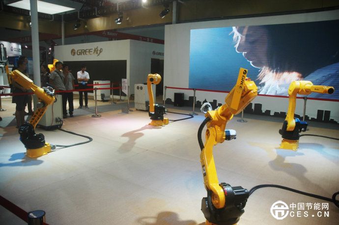 從網(wǎng)上的圖片上我們可以看出,在格力的工廠,5個桔黃色的機器人站成一排,像人一樣靈活地揮動著“手臂”,自如地“抓取”零部件,整個流程銜接得很流暢,快速而有序。據(jù)悉,雖然這條生產(chǎn)線上的機器人是進口的,但這條由機器人及相關(guān)設備組成的生產(chǎn)線卻是由格力自主設計研發(fā)的。也就是說,該機器人本體是外購的,但整個集成方案核心內(nèi)容是格力自己完成的。上海家電網(wǎng)了解到,目前負載8公斤的機器人,格力已基本都能自己搞定,12公斤、20公斤、50公斤的,正在進行到最后的試制量產(chǎn),180公斤的,到今年年底之內(nèi),基本上也可以全面實現(xiàn)自制。