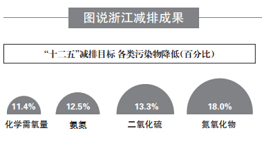 根據(jù)環(huán)保部和浙江省政府簽訂的《浙江省“十二五”主要污染物總量減排目標(biāo)責(zé)任書》,“十二五”浙江省化學(xué)需氧量、氨氮、二氧化硫和氮氧化物的減排目標(biāo)分別是11.4%、12.5%、13.3%和18.0%。浙江省的減排任務(wù)是全國最重的省份之一,其中氮氧化物減排比例為全國最高。