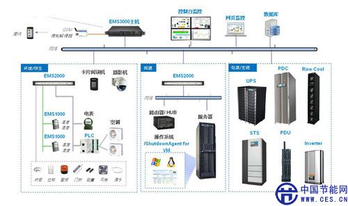 主要監(jiān)控架構(gòu)為EMS3000, 藉由以太網(wǎng)絡(luò)(ethernet)架構(gòu)SNMP協(xié)議整合臺(tái)達(dá)設(shè)備及監(jiān)視, 消防等外部組件, 及監(jiān)視具備IPMI協(xié)議內(nèi)部之服務(wù)器之內(nèi)部風(fēng)速及溫度狀態(tài),結(jié)合對(duì)服務(wù)器芯片及燈光控制的管理,實(shí)現(xiàn)虛擬化節(jié)能及照明節(jié)能。