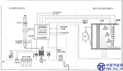 該系統(tǒng)即可以作為大空間加濕作用,也可以作為降溫用途。