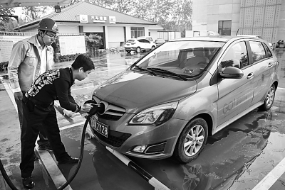 九月二十九日,在京哈高速河北香河服務(wù)區(qū),一名北京的電動(dòng)汽車(chē)車(chē)主在工作人員的輔助下為汽車(chē)刷卡充電。當(dāng)日,電動(dòng)汽車(chē)快充站落戶京哈高速服務(wù)區(qū)。