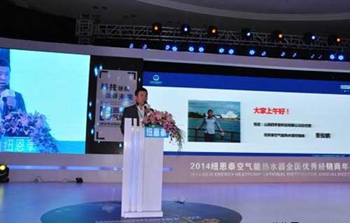 作為中國空氣能熱水器行業(yè)領袖型代表經銷商——山西董俊鵬,無疑是領袖計劃里的佼佼者。這幾年來,即使在寒冷的山西市場,也將空氣能熱水器產品賣得風生水起,無疑讓在廣大北方市場的經銷商們“大跌眼鏡”。這讓很多廠家與經銷商們,明白一個道理,在北方市場有市場,但是經銷商必須懂技術。在紐恩泰2014年全國優(yōu)秀經銷商大會上,董俊鵬與在會的近1500名經銷商分享了他成功的經驗,尤其是采暖市場,更有著他獨特的一套。就如他所講,“在北方市場,如果要做采暖,首先必須要為客戶考慮到最差環(huán)境之下,你的機器是否能夠做到穩(wěn)定,滿足你在合同中向客戶承諾的。”貌似十分簡單的表述,但是卻有深刻的見地。他認為,在前期與客戶溝通的時候,無論是客戶知道的,還是不知道的,都應該和客戶說明白。如果客戶只需要10噸熱水的供應量,那么在為客戶做這個項目的時候,整套系統(tǒng),做到10噸熱水內,完全滿足,并保障工程運行的穩(wěn)定性。而且這個用水量,我們都可以用水表與電表來監(jiān)控,都可以保留數(shù)據(jù)。超過這個需求范圍之外的,導致系統(tǒng)出問題,那就是客戶的責任。因為機器一旦滿負荷運行,肯定會出問題,人都會疲勞,機器也是有壽命的。所以很多時候,不是機器不行,而是我們和客戶溝通以及施工的問題。