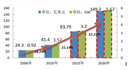從我國微電網(wǎng)發(fā)展路線并借鑒國外經(jīng)驗,我國微電網(wǎng)的發(fā)展的重點為解決分布式發(fā)電的并網(wǎng)問題。國家“十二五”可再生能源發(fā)展規(guī)劃中明確提出到2015 年要建成30 個“新能源微電網(wǎng)示范工程”的目標(biāo)。從2010 年到2015 年的已建成投運的微電網(wǎng)示范工程來看,2015 年這一目標(biāo)基本可以完成,而且這些微電網(wǎng)示范項目已經(jīng)逐步解決技術(shù)問題。在基本技術(shù)問題解決的基礎(chǔ)上, 在“十三五”期間,微電網(wǎng)示范項目必將加速開展建設(shè)。保守估計, 在“十三五”期間有望完成微電網(wǎng)示范工程200 個。以每個微電網(wǎng)裝機容量3MW 計,投資5 千萬/MW 計,則“ 十三五” 期間裝機容量可達(dá)600MW,市場投資300 億元。
