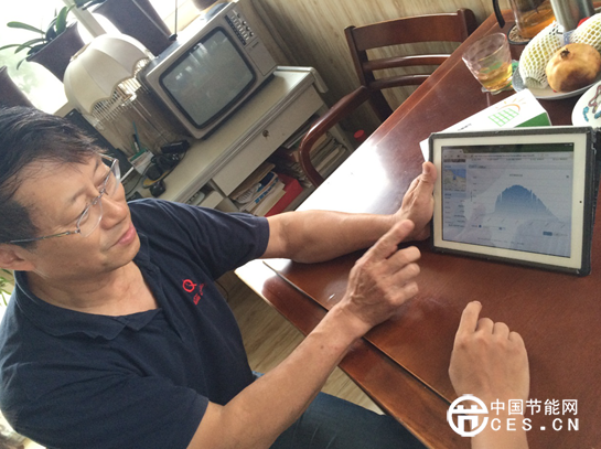 我們剛坐下,蔡先生便拿出iPad給我們展示自己家電站的發(fā)電情況。“我的電站從去年八月份開始發(fā)電,到目前為止已經(jīng)發(fā)電八千多度,天氣好的情況下一天能發(fā)三十多度電,完全能滿足家里的所有用電,并且還有富余。余下的電自動上傳到國家電網(wǎng),可以上網(wǎng)賣電賺錢。供電局每個月都會將賣電的錢打到我的銀行賬戶上。”