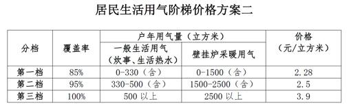 按照此前公布的兩套聽證方案,兩套方案均保障了85%的居民家庭用氣價(jià)格不調(diào)整,用氣不增支;10%的二檔家庭,方案一和二的用氣年增支最高分別不超71.4元和不超37.4元;年用氣量超過二檔后,用氣越多,增支越多。