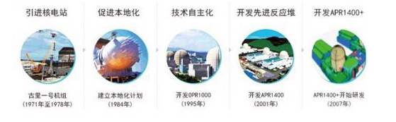 受美國三哩島和烏克蘭切爾諾貝利核事故的影響,歐美國家在核電道路上多少都有過走走停停的經(jīng)歷,但韓國對核電的態(tài)度從未扭轉(zhuǎn),核電建設(shè)也不曾間斷,并且在研發(fā)、生產(chǎn)、建設(shè)等環(huán)節(jié)力求自主化。最早的8臺機(jī)組是從美國、法國、加拿大3國進(jìn)口的。1984年,韓國以美國燃燒工程公司(現(xiàn)為美國西屋電氣公司的子公司)的“ABB-CESystem80”蒸汽供應(yīng)系統(tǒng)為設(shè)計(jì)基礎(chǔ),推進(jìn)核電站標(biāo)準(zhǔn)化項(xiàng)目。1987年,韓國與該公司達(dá)成一項(xiàng)為期10年的核電技術(shù)轉(zhuǎn)讓協(xié)議,開始正式吸收和消化壓水堆核電技術(shù)。1997年該協(xié)議到期后,韓國又和西屋電氣公司續(xù)簽了10年的技術(shù)使用許可協(xié)議。在這20年間,韓國繼續(xù)開發(fā)自主化核電技術(shù),并設(shè)計(jì)出“韓國標(biāo)準(zhǔn)核電站(KSNP-OPR1000)”,實(shí)現(xiàn)了第二代核電技術(shù)的自主化。從1998年建成投運(yùn)的蔚珍核電站3號機(jī)組開始,共有8臺機(jī)組搭載“OPR-1000”型壓水反應(yīng)堆,如今都已服役。據(jù)韓國電力公社(KEPCO)官網(wǎng)介紹,從2001年起,韓國核電技術(shù)的自主化率達(dá)到了95%以上。