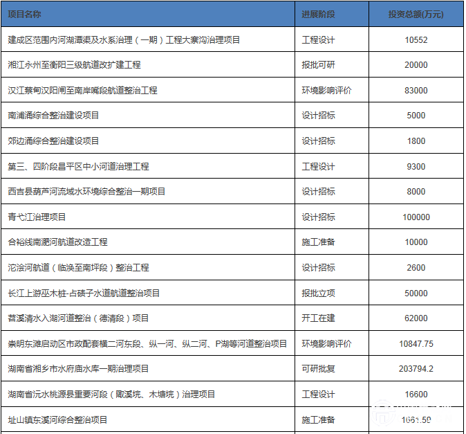 2015年10月國內(nèi)擬建和在建河道整治項目(部分)