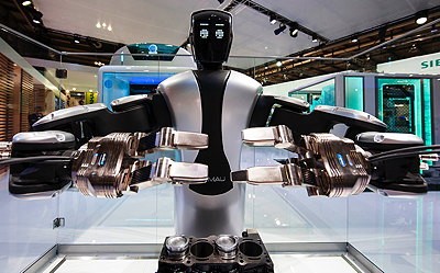 核心提示:意大利機(jī)械制造商柯馬率先在工業(yè)應(yīng)用中開發(fā)雙臂人形機(jī)器人。在日前舉行的2015意大利米蘭機(jī)床展覽會(huì)(EMO)上,柯馬展示出此款機(jī)器人的概念版,雙