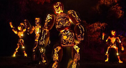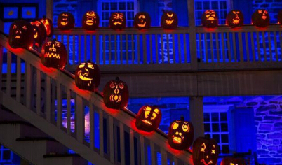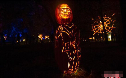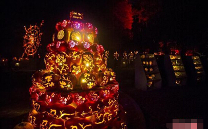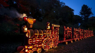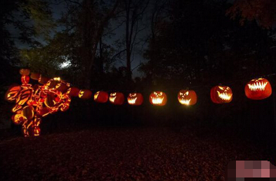 當?shù)貢r間10月27日,美國紐約,范科特蘭特大宅博物館展出各式各樣的手工雕刻南瓜燈。超過7000個手雕南瓜燈點亮,其中除了骷髏等經(jīng)典萬圣節(jié)造型,還有火車之類的新奇角色出鏡。