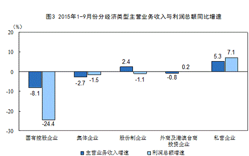 1-9月份,在規(guī)模以上工業(yè)企業(yè)中,國有控股企業(yè)實(shí)現(xiàn)利潤總額8339.6億元,同比下降24.4%;集體企業(yè)實(shí)現(xiàn)利潤總額344.2億元,下降1.5%;股份制企業(yè)實(shí)現(xiàn)利潤總額28850.8億元,下降1.1%;外商及港澳臺商投資企業(yè)實(shí)現(xiàn)利潤總額10684億元,增長0.2%;私營企業(yè)實(shí)現(xiàn)利潤總額15297.7億元,增長7.1%。