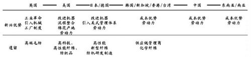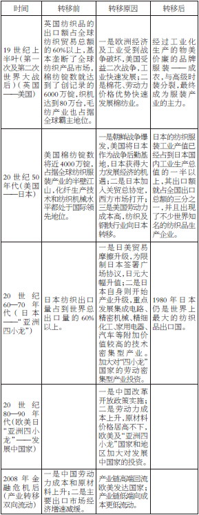 表為國際紡織服裝產(chǎn)業(yè)的轉(zhuǎn)移背景