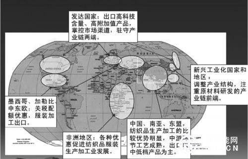 圖為國際紡織服裝產(chǎn)業(yè)的轉(zhuǎn)移路線