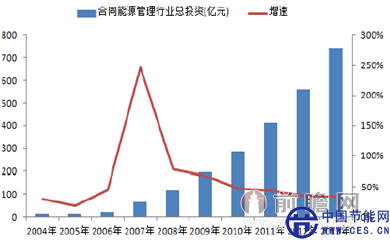 前瞻產(chǎn)業(yè)研究院發(fā)布的《2014-2018年中國合同能源管理(EMC)行業(yè)發(fā)展前景與投資戰(zhàn)略規(guī)劃分析報(bào)告》顯示,2004-2013年,合同能源管理(EMC)總投資額從11.0億元增長到742.3億元,復(fù)合增速59.71%;形成節(jié)能量2559萬噸標(biāo)準(zhǔn)煤,占2013年全國節(jié)能能力目標(biāo)(6000萬噸標(biāo)準(zhǔn)煤)的42.65%。根據(jù)《節(jié)能減排“十二五”規(guī)劃》,我國“十二五”期間通過合同能源管理方式實(shí)現(xiàn)的節(jié)能能力為6000萬噸標(biāo)準(zhǔn)煤,但是2011-2013年合同能源管理實(shí)際形成的節(jié)能能力為6036萬噸標(biāo)準(zhǔn)煤,已經(jīng)超過規(guī)劃的目標(biāo)。