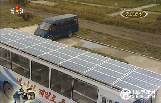 2015年11月3日消息,朝鮮中央電視臺(tái)播放的畫(huà)面顯示,朝鮮正在開(kāi)發(fā)運(yùn)行新動(dòng)力能源的公交車(chē)。這些南浦市的新公交車(chē)搭載32塊1100瓦特的太陽(yáng)能電池板,同時(shí)配備電動(dòng)機(jī),最多可搭載140人,最高時(shí)速為每小時(shí)40千米。