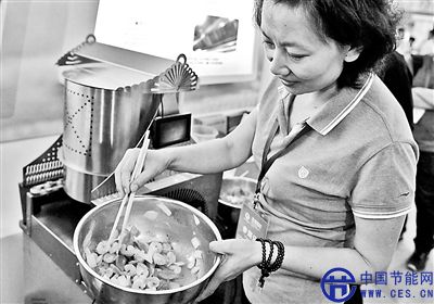 除了“道路抑塵劑”,一款與百姓生活悉悉相關(guān)的高新技術(shù),也吸引了不少人的眼光。在北京展覽館2號(hào)展廳,一臺(tái)智能烹飪機(jī)器人正在“炒”蝦仁,出鍋時(shí)僅花費(fèi)2分半鐘時(shí)間,更特別的是,炒菜時(shí)周圍沒有嗆人的油煙味。制造商北京警盾京西廚房設(shè)備公司介紹說,他們這臺(tái)智能烹飪機(jī)器人的智能程度很高,人們只要按照食譜準(zhǔn)備好原料,調(diào)好自己的口味后,什么時(shí)間加佐料、出鍋,就都可以由這臺(tái)智能烹飪機(jī)器人來承擔(dān)。另外,這臺(tái)烹飪機(jī)器人的油鍋溫度是智能控制的,在炒菜的時(shí)候沒有油煙,沒有明火。