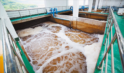 要做到“零排放”,既要優(yōu)化生產(chǎn)段,更要把牢處理關(guān)。記者發(fā)現(xiàn),工業(yè)園11棟廠房,每棟樓體上都布了8根管道,它們從各個(gè)車間收集了8類生產(chǎn)污水,經(jīng)埋設(shè)在地下的總管,最后匯總到污水處理廠。這座污水處理廠引進(jìn)德國先進(jìn)技術(shù),整個(gè)處理過程中廢水利用率達(dá)到99.64%,滿負(fù)荷運(yùn)轉(zhuǎn)時(shí)日處理能力5000噸。