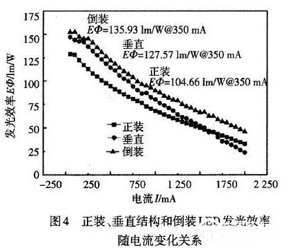 本文對比研究了 垂直結(jié)構(gòu)LED 和 倒裝結(jié)構(gòu)LED 隨著電流增大的光輸出變化規(guī)律,并且與 普通正裝LED 進行了比較,得出了倒裝結(jié)構(gòu)LED具有更好的抗大電流沖擊穩(wěn)定性和光輸出性能。