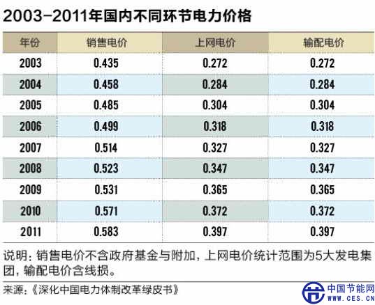 去年11月,《中共中央關于全面深化改革若干重大問題的決定》再次提出,要推進水、石油、天然氣、電力、交通、電信等領域價格改革,放開競爭性環(huán)節(jié)價格。其中,電力價格的改革明確指出將以“放開上網電價和銷售電價、管住中間輸配電價”為基本方向。與12年前電力體制改革的思路相比,如今的提法如出一轍。