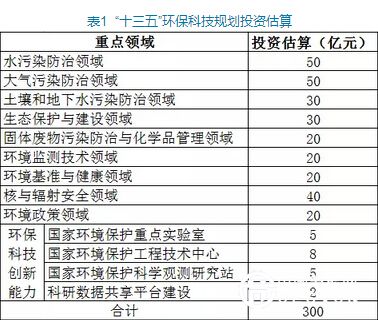 表1 “十三五”環(huán)??萍家?guī)劃投資估算